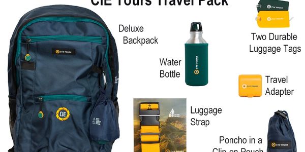 • Travel Backpack• Travel Adapter• Rain Poncho with bag• Luggage Strap and Tags• Documents/Passport Wallet